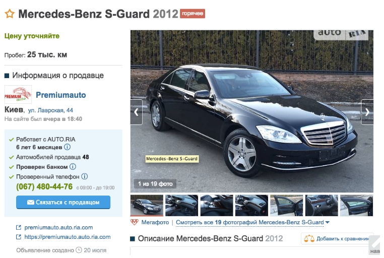 По данным сайта Цензор.Бизнес на сайте с подержанными автомарками есть именно такой Mercedes Benz, как и планируют купить главе "Нафтогаза". Совпадают все характеристики - пробег 25 тысяч, кожаный салон, год выпуска 2012.