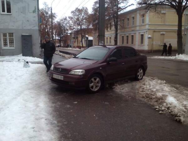 В Чернигове водитель решил не заморачиваться по поводу выбора места для парковки и оставил свой автомобиль посреди тротуара.