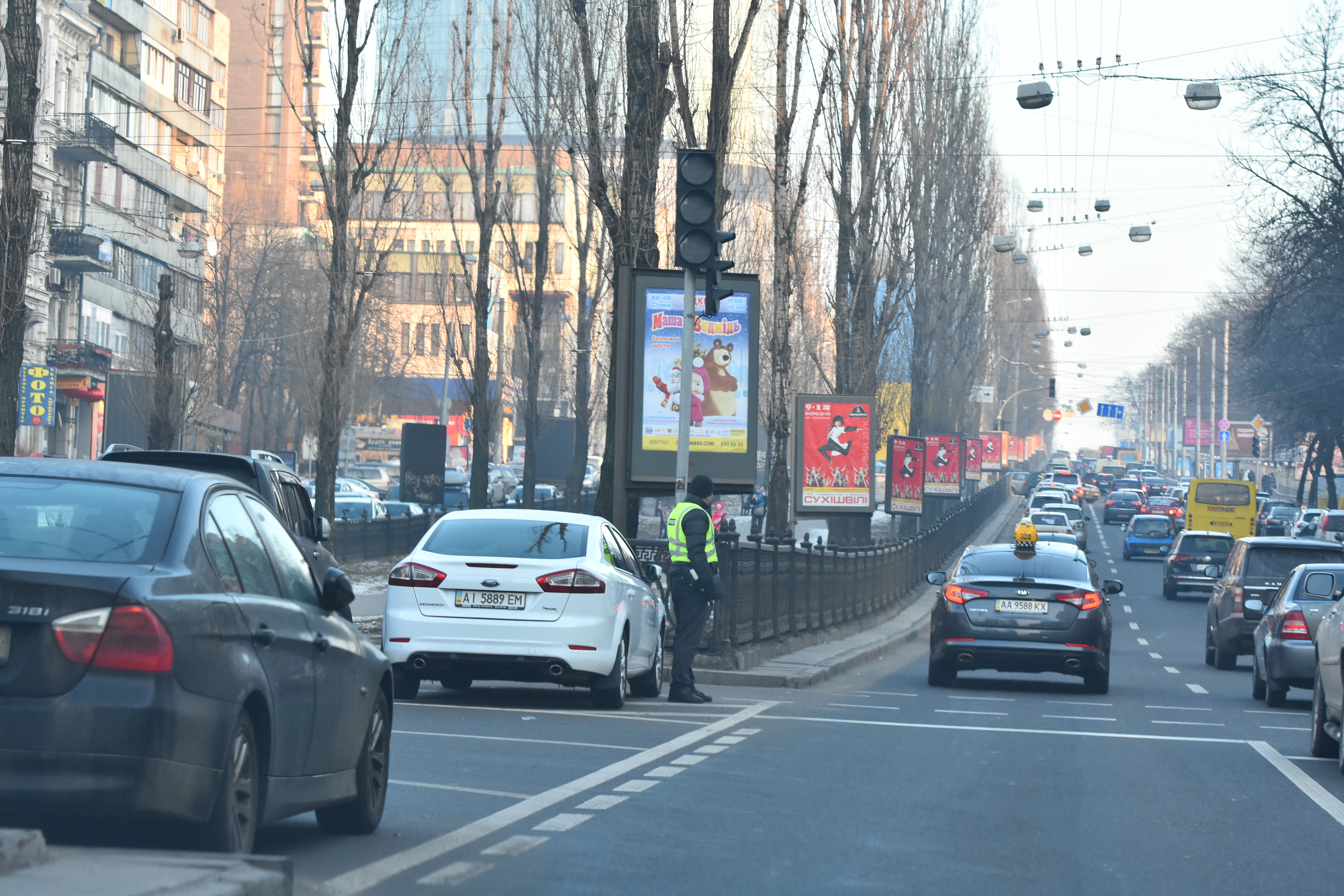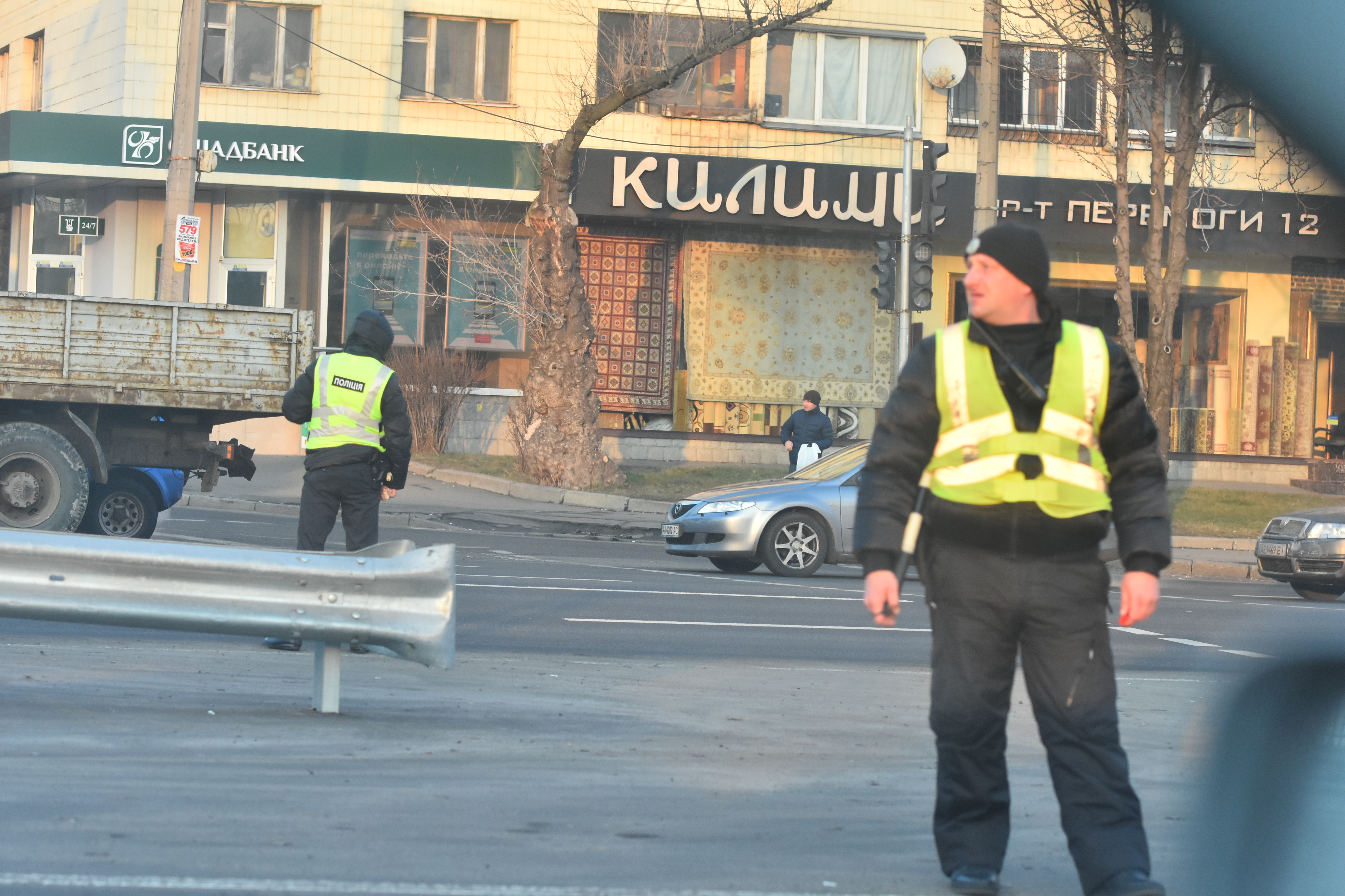 За 10 минут до того, как Гройсман вышел из университета, на проспекте Победы уже появились полицейские, которые должны придерживать автопоток.