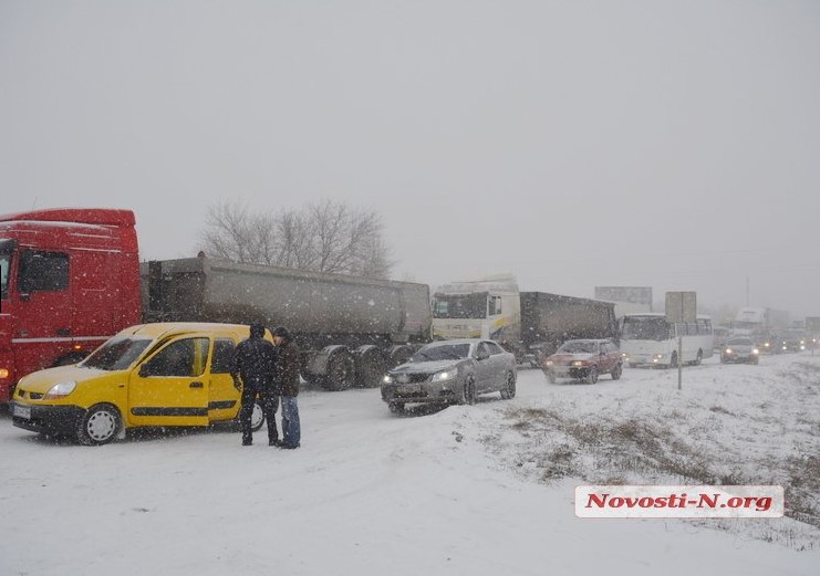 - На выезде из Николаева на Одессу скопились сотни автомобилей — водители прорываются несмотря на метель