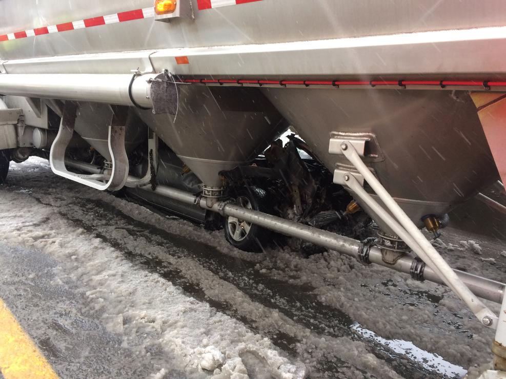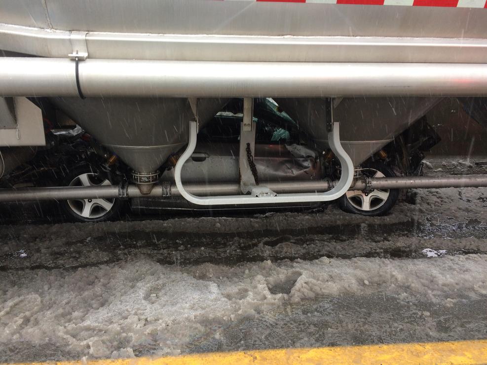 На днях в штате Нью-Гэмпшир (США) произошло довольно жуткое ДТП с участием автомобильной цистерны и Honda Civic. Причиной аварии стала скользкая дорога.