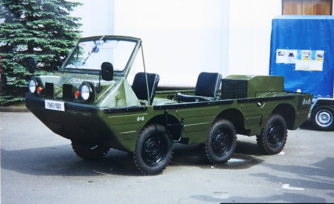 Хотя если быть точным, то первые образцы плавающего трехосного автомобиля ЛуАЗ появились еще в 1979 году. Машина была разработана на базе транспортера переднего края – ЛуАЗ-967М (4х4) и предназначалась исключительно для военных.