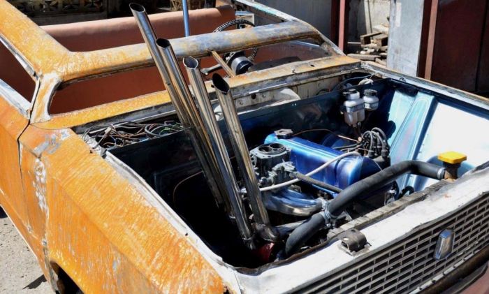 Двери? Нафиг. Крышу – обрезать, проемы – заварить, крышу – срезать. Руль – из велосипедной цепи. В общем, настоящий трэш тюнинг ВАЗ, который позволил создать крутую тачку в духе «Безумного Макса». И в данном случае секрет успеха заключается в том, что чем больше режешь и кромсаешь, тем лучше эффект. Скажем так – хуже точно не будет. Хотя, все зависит от “вкуса”, ведь некоторым больше по душе менее радикальный тюнинг ВАЗ-2101, позволяющий сделать из “копейки” конфетку.