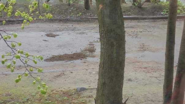 В Харькове в одном из дворов ямы засыпали землей и притоптали ногами.