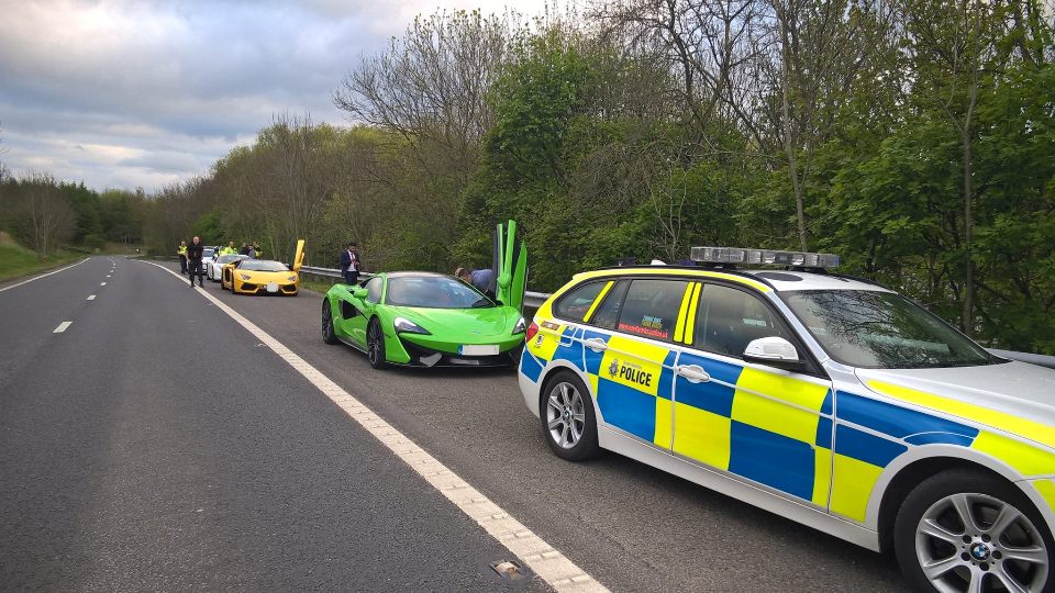 Служители правопорядка отметили, что задержали желтый Lamborghini Aventador (судя по фотографиям, родстер), белую Ferrari (вероятно, 458 Italia) и зеленый McLaren 570S. Водители суперкаров во время движения на шоссе занимали всю ширину проезжей части и практически останавливались, после чего резко разгонялись на освободившейся впереди дороге. Так они сделали несколько раз, о чем в полицию заявили другие водители на M1.