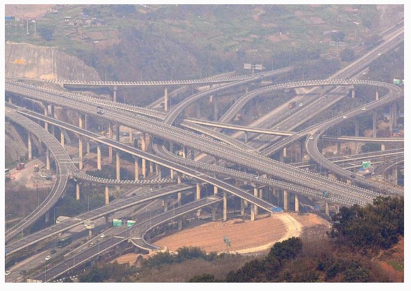 Как пишет издание People's Daily Online, она состоит из пяти уровней и 20 эстакад, расходящихся в восьми направлениях.