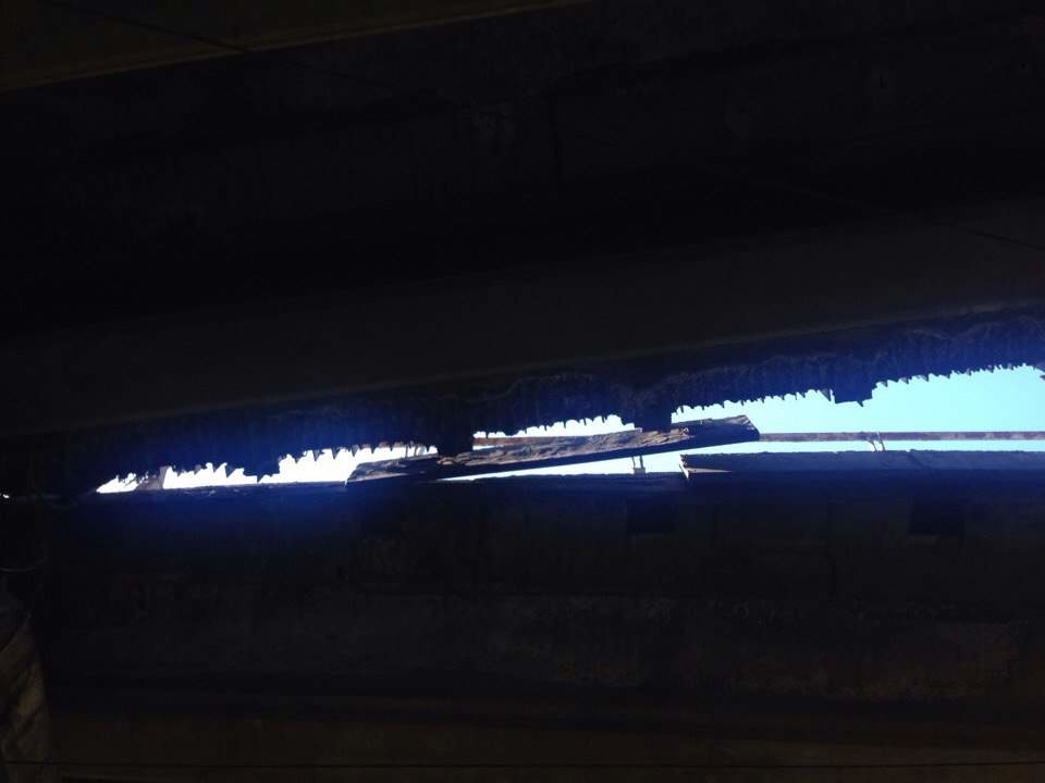 По словам очевидцев, бетонные опоры моста рушатся из-за осадков и коррозии, а на отдельных участках мост и вовсе осыпается на стоящие внизу автомобили.
