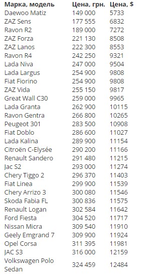 CarDiagram представляет обновляемый рейтинг самых дешевых автомобилей в Украине в 2017 году.