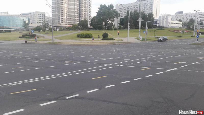 На пересечении проспектов Машерова и Победителей коммунальщики нанесли временную разметку.