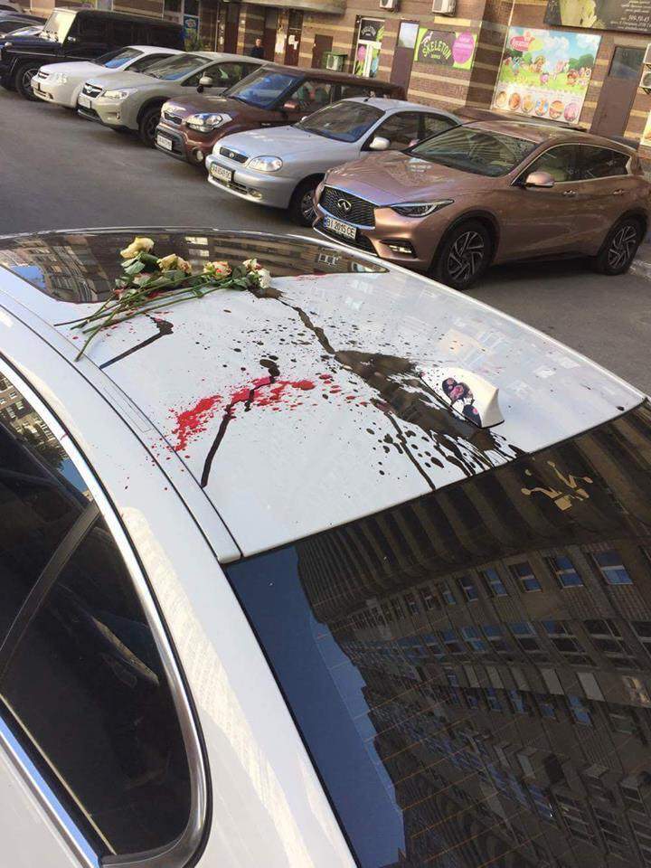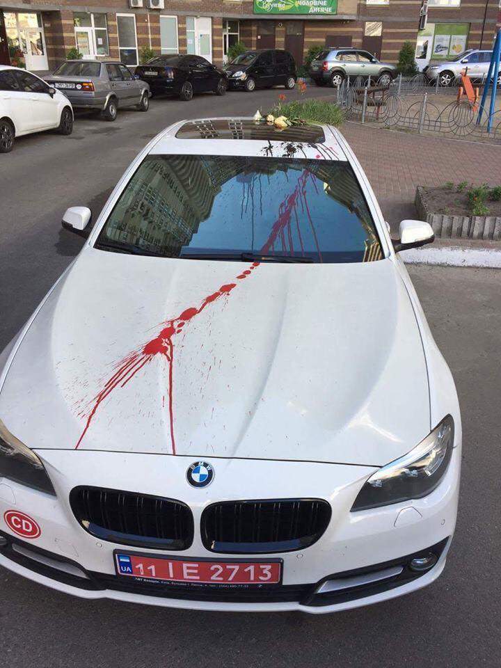 В Киеве в жилом массиве Позняки местные жители одного из домов отомстили водителю за неправильно припаркованное авто.