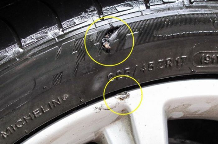 Снять колесо, поймать попутку и отвезти поврежденную покрышку в ремонт на шиномонтаж. Но если прокол не большой, то можно прибегнуть ко второму варианту, и произвести временный ремонт своими руками, чтобы самостоятельно доехать к ближайшему шиноремонту.