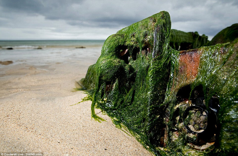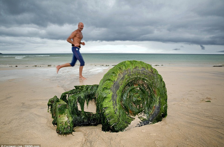 Жители британского графства Корнуолл обнаружили необычную находку: на одном из местных пляжей им удалось обнаружить останки неизвестного старого автомобиля.