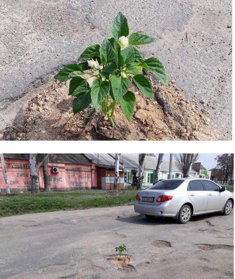 В комментариях пользователи отмечают, что растение пропадет, а такой отчаянный жест вряд ли поможет изменить качество дорог.