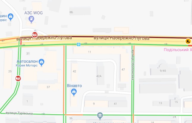 - На ул. Набережно-Луговая в Киеве образовался затор из-за ДТП (фото)